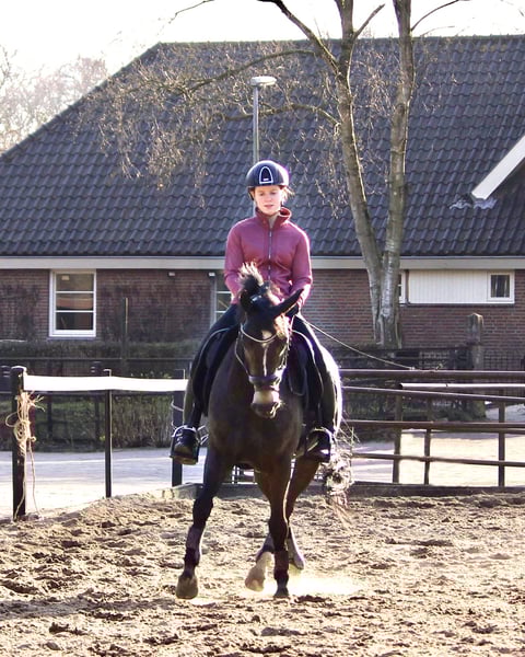 Voor mijn pony Merel ben ik opzoek naar een nieuw huisje. Merel is een betrouwbare lieve D-pony van 13 jaar oud. Ze meet 1,47m en is een merrie. ik heb altijd veel dressuur wedstrijden gereden met haar. De laatste tijd zijn we vaak op buitenrit geweest. Merel is een lieve pony, ze is braaf bij de hoefsmid, dierenarts enzovoort. Ook op de trailer is ze braaf en makkelijk te laden. Merel heeft M2 dressuur gelopen en kan een aantal Z oefeningen. Springen vind ze ook erg leuk om te doen! Ze is een echte allround pony omdat ze alles kan en super braaf is. Zelf heb ik 6 jaar van haar mogen genieten en ze mag nu naar een nieuw 5-sterren huisje. Merel heeft een opmaat gemaakt hulsebos zadel van 16,5 inch deze mag mee verkocht worden. Meer video's zijn beschikbaar op aanvraag.