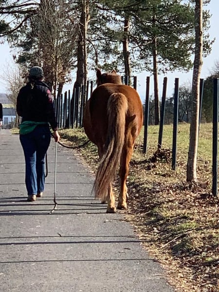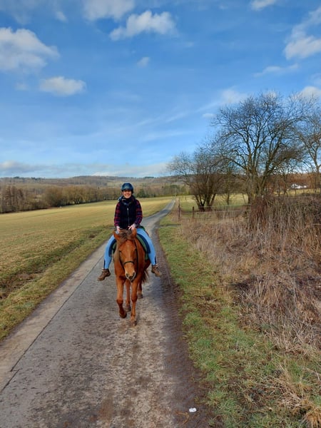 New-Forest-Mix, geb. 2013, ca. 1,48 m, Western geritten. Kein Anfängerpferd, aber eine tolle Partnerin für Menschen mit Pferdeverstand. Aus persönlichen Gründen muss ich meine liebe Stute Hazel abgeben. Sie kennt Liberty, Bodenarbeit nach Parelli & Geitner, ist sozial in der Herde, wach im Kontakt und liebt klare Kommunikation. Im Gelände motiviert, braucht sie etwas Routine und Vertrautheit – auf bekannten Wegen läuft sie gut, auch allein. Mit einem sicheren Menschen an ihrer Seite kann sie draußen richtig aufblühen. Sie bringt eine gute Basis mit, muss aber noch weiter ausgebildet werden und braucht klare Führung, um ihr Potenzial voll zu entfalten – besonders unter dem Sattel. Maßangepasster Westernsattel kann bei Interesse miterworben werden. Standort: 56450 Salz Preis: VB 4.999 € (Stute) Maßangeferrigter Westernsattel: 999 € optional Bei ernsthaftem Interesse gerne melden – mehr Infos usw. auf Anfrage.