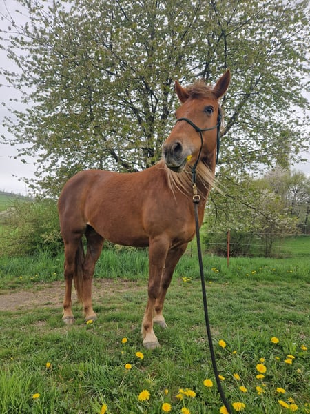 New Forest-mix, geboren in 2013, ca. 1,48 m, Western gereden. Geen beginnerspaard, maar een geweldige partner voor mensen met paardenkennis. Vanwege persoonlijke omstandigheden moet ik mijn lieve merrie Hazel afstaan. Ze kent liberty, grondwerk volgens Parelli en Geitner, is sociaal in de kudde, alert in contact en houdt van duidelijke communicatie. Motiverend in het terrein, heeft ze wat routine en vertrouwdheid nodig – op bekende paden loopt ze goed, ook alleen. Met een zelfverzekerde ruiter aan haar zijde kan ze buiten echt floreren. Ze beschikt over een goede basis, moet nog verder worden opgeleid en heeft duidelijke leiding nodig om haar volledige potentieel te benutten – vooral onder het zadel. Op maat gemaakte Western-zadel kan bij interesse worden meegekocht. Locatie: 56450 Salz Prijs: Bieden, €4.999 (merrie) Op maat gemaakt Western-zadel: €999 (optioneel) Bij serieuze interesse neem gerust contact op – meer informatie en details op aanvraag.