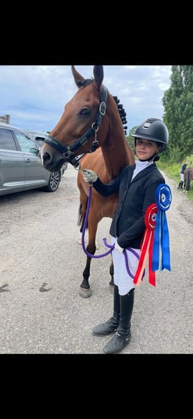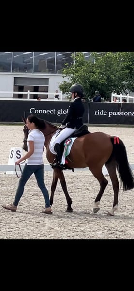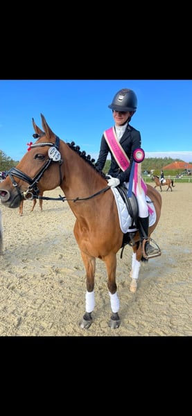 Donja was imported from the Netherlands and comes from an excellent lineage. She is registered as a New Forest Pony and is a descendant of Holthausen Frodo II. Over the past two years, she has been ridden by a 13-year-old girl, with whom she has achieved great success at dressage competitions in the Czech Republic. Donja is excellent at teaching a child how to present a dressage test properly. She is very focused within the arena, maintains a consistent contact, has an unshakable rhythm, and almost performs the exercises on her own. Throughout both competition seasons, she has never finished outside the top placements. She has mostly competed in A-Dressage classes but also masters extended trot, simple flying changes, and leg-yield. In handling, Donja is very straightforward and affectionate. She has always been well cared for and regularly attended to by vets, physiotherapists, and farriers. We have several other interesting horses listed. If you are looking for something different, please feel free to contact us. Want to see if our work convinces you? Visit our Facebook page, where you can also find reviews from our international clients.