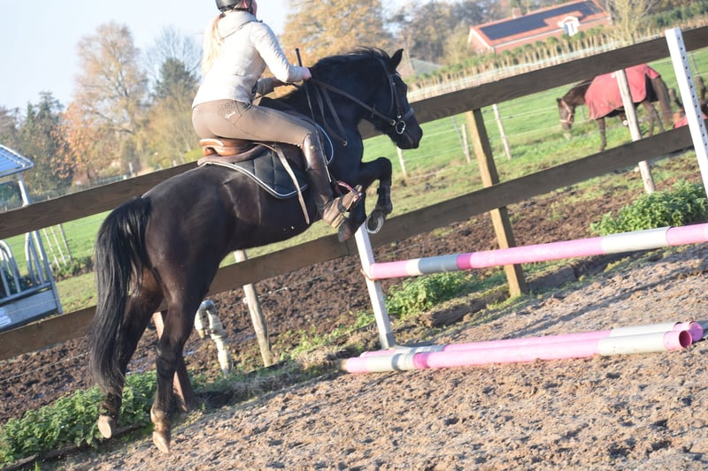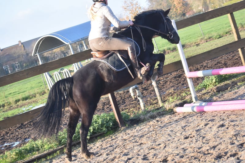 Hungario's Felice ( roepnaam Fee) is een prachtige, 7 jarige New Forest merrie. Het stamboek vindt haar erg correct en daarom heeft ze het predicaat STER gekregen. Klik HIER voor haar verrichtingsonderzoek en HIER voor haar papier. Ze is ca 138 m hoog en qua maat ook geschikt voor een niet ál te grote volwassene. Ze heeft even een tussenstation gehad voor een kind van 3... Buiten het feit dat dit wel heel erg jong is geven wij graag aan dat kinderen en pony's altijd begeleidt moeten worden, zeker in het begin. Als je bij Fee in het midden van de bak begeleidt gaat het hier en voorheen prima. Ze is tot nog toe buiten erg fijn en dat doet ze ook het liefste. Het vorige baasje wil graag contact hebben met de nieuwe eigenaar. Ze schrijft :" Fee is een echte tut pony en houd van uren poetsen, Erg braaf bij een zekere ruiter. Braaf in het bos en kijkt van niks op. Gaat makkelijk de trailer op Meerdere keren mee op oefenwedstrijd geweest en ook dat doet ze super braaf. Springen vind ze erg leuk. Ze is eigenlijk super nuchter. Incl. zadel en hoofdstel compleet 5750,-