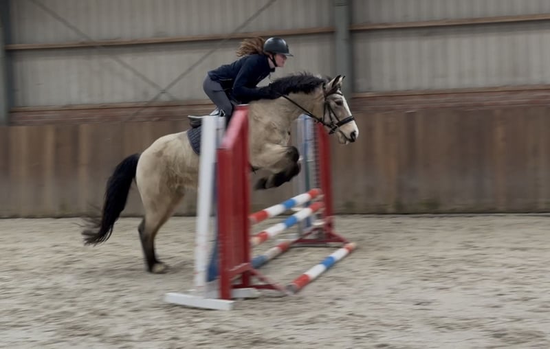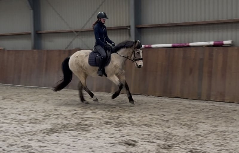 Door inruil verkregen deze schitterende D spring pony. ‘Vikki’ is een opvallend mooie D pony merrie. Ze beschikt over een mooie valk/isabelle kleur. Ze staat correct op haar benen en heeft veel body. Ze kan netjes bewegen en zeer goed springen. Ze kan een klein parcoursje rond springen. Ze heeft een frans paspoort en haar vader is een Newforest. Bij interesse graag bellen of appen op telefoonnummer: +31643197337 🌟 🎥 Een video is per whatsapp op te vragen.