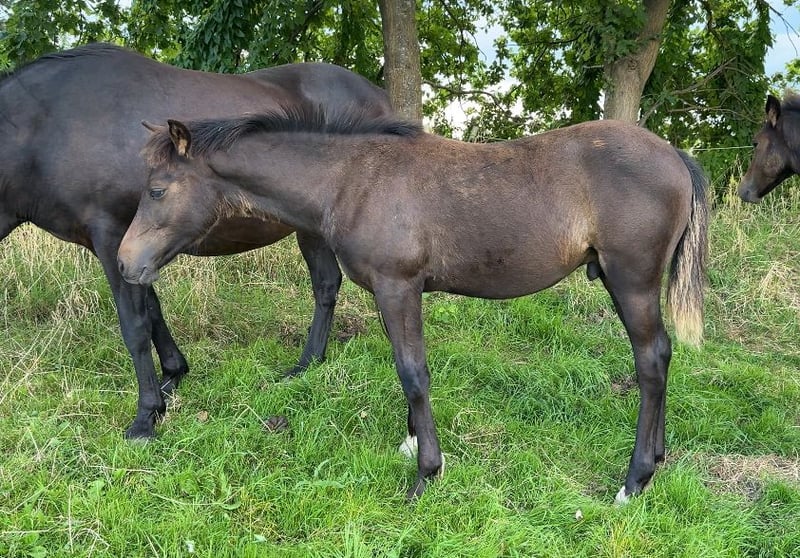 Hallo! Zum Verkauf steht dieser am 13.03.2025 geborene New Forest Pony Hengst Absetzer. In der Farbe Dunkelbraun, abstammend von Samba Boy x Wayland Cranberry x Valentino. Endmaß ca. 144 - 147 cm Ist selbstverständlich Entwurmt und schon dem Hufschmied vorgestellt. Einen sehr guten, Kostengünstigen Aufzuchtplatz können wir vermitteln. Ebenfalls kann ein Transport organisiert werden. Das Absetzen der Mutter planen wir nach erreichen des 5 - 6 Lebensmonats. Mutter (Bild 4) kann bei uns besichtigt werden. Hat bereits eine gekörten Sohn, Sulaatik‘s Vanico.