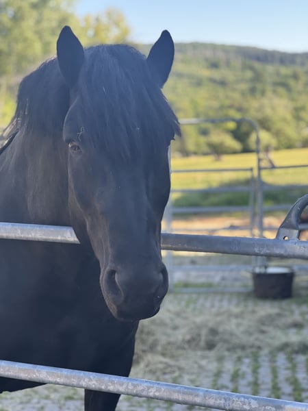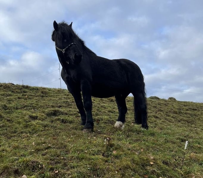 With a heavy heart, I am seeking a new, suitable home for my 11-year-old Noriker gelding, as I have to part with him due to health reasons. This decision is incredibly difficult for me, so I am only looking for the very best hands for him. His height is 165 cm (16.1 hh), and he weighs approximately 850 kg. He has been ridden for leisure (English saddle with fleece pad, mostly bitless, but a bit is no problem) and has been driven both single and pair. He is willing to work, honest, and reliable. He is familiar with indoor riding arenas and ground work, but his heart truly belongs to the outdoors. Calm rides – whether short or longer – are exactly his thing. He does not need daily work; he simply enjoys his life as a horse. In the past, he had some health issues, but these are no longer relevant. He now appears unremarkable and fully capable of handling leisure activities without any problems. He is not a beginner’s horse, but he is certainly not a problem horse either. Like any characterful horse, he has his quirks – but those who take the time to understand him will gain a loyal partner with personality. He is not suited for competitive sport, but perfect for relaxed, enjoyable hours in nature. He has always been kept in a herd environment. Currently, he lives with a Tinker gelding buddy and two donkeys. He will probably miss them at first. In winter, he is kept in an open stable with turnout, weather permitting, with daily grazing. In summer, he enjoys 24/7 pasture with shelter. He is definitely not a stable horse. An extensive pasture system with plenty of movement, outdoors day and night, would be ideal. He prefers to be in a small, harmonious herd with several companions. He will only be placed in good, experienced hands. Priority goes to the well-being of the horse over price. If you can offer a characterful Noriker a species-appropriate home and are looking for a reliable leisure partner, I would be very happy to hear from you. Feel free to come and meet him – perhaps your new riding partner is waiting here for you.