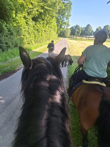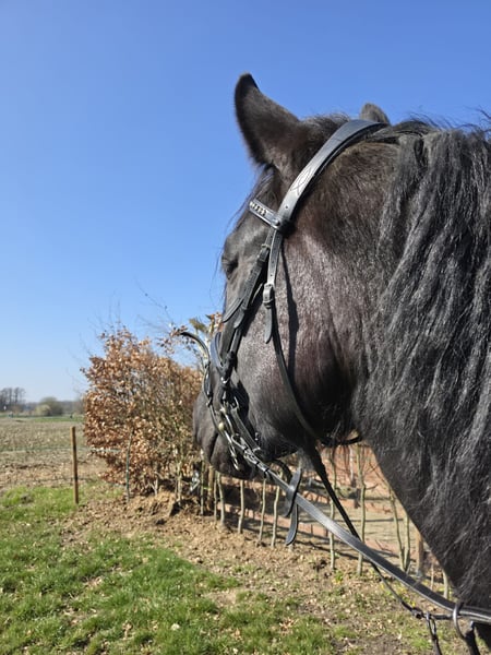 For sale is a 5-year-old dark bay Noriker gelding with an approximate height of 16.1 hh. Pedigree: Sire *Eisenhut Nero*. The gelding is backed and currently used for leisure riding. He is familiar with dogs, other animals, children, and road traffic, and consistently shows a calm and fearless demeanor. He has a relaxed temperament but requires a clear, assertive handler with a strong personality. Without proper guidance, he can become stubborn and somewhat reluctant to work, so regular, meaningful activity is essential. Mentally, he needs to be challenged and engaged. He is very compatible with other horses and is accustomed to both box and open stable management. In daily handling, he proves to be reliable: * Forging-friendly * Loading-friendly No health issues are known. Thanks to his disposition, he is especially suitable for carriage drivers or experienced leisure riders who have worked with young horses before. Tack can be included. The gelding is currently available. **Location: Beckum**