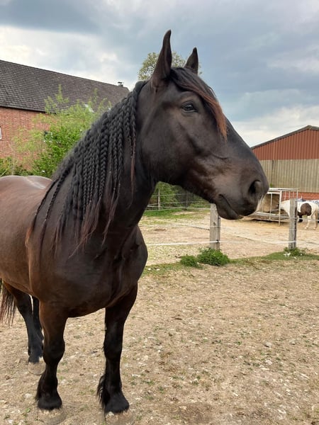 Prachtige Norikerhengst zoekt zijn soulmate Te koop staat een indrukwekkende Noriker, bijna 1,65 m hoog, die in maart 6 jaar wordt. Een stevige type met een vriendelijk karakter en een bijzonder persoonlijkheid. Hias is tot nu toe niet bereden. Hierdoor biedt hij de prachtige mogelijkheid om samen met zijn nieuwe eigenaar te groeien. Qua karakter overtuigt hij met een vriendelijke, open, eerlijke en nieuwsgierige aard. Hij houdt van nieuwe uitdagingen, verkent graag zijn omgeving en toont altijd interesse en leergierigheid. Bijzonder is zijn grote behoefte aan nabijheid en binding. Hij zoekt de connectie met “zijn” persoon, geniet van aandacht en wil serieus genomen worden als partner. Wie tijd, geduld en hart investeert, krijgt een trouwe metgezel voor het leven. Hias is ideaal voor iemand die zijn vrijetijdspartner of toekomstige allrounder zelf wil opleiden en waarde hecht aan een hechte band. Hij kent al grondwerk, vrijheidsdressuur en mooie wandelingen, zowel alleen als in groep. Bij serieuze interesse hoor ik graag een berichtje met een korte introductie. ✨