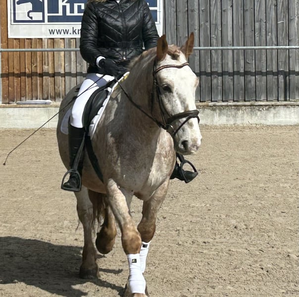 **Verkaufsanzeige: Noriker-Wallach, Geburtsjahr 2020, Roan-Red, 165 cm** Zum Verkauf steht ein beeindruckender Noriker-Wallach, geboren im Jahr 2020. Mit seinem markanten Roan-Red-Fell zieht er sofort alle Blicke auf sich. Er ist ein kräftiges und gut gerittenes Freizeitpferd mit einem Stockmaß von 165 cm, das sowohl für den Alltag als auch für entspannte Ausritte bestens geeignet ist. Der Wallach präsentiert sich in einem gepflegten Zustand und ist sowohl vom Charakter als auch vom Ausbildungsstand her sehr angenehm. Seine robuste Konstitution und sein ausgeglichener Charakter machen ihn zu einem zuverlässigen Begleiter für Freizeitpferdeliebhaber. Er ist freundlich im Umgang, kennt die Grundkommandos und zeigt sich auf dem Platz sowie im Gelände stets gelassen und brav. Wegen eines Spat Befundes im rechten hinteren Sprunggelenk können wir ihn leider nicht weiter zuverlässig in unserer Reitschule einsetzen. Der Befund ist tierärztlich abgeklärt und wird aktuell auch homöopathisch unterstützt. Laut Tierarzt ist er weiterhin reitbar. Aufgrund seiner Vielseitigkeit und seines ausgeglichenen Wesens ist dieser Noriker-Wallach ideal für Reiter, die ein zuverlässiges Freizeitpferd suchen. Er ist gesund, regelmäßig entwurmt und geimpft und freut sich auf einen neuen, verantwortungsbewussten Besitzer, der seine Stärken zu schätzen weiß. Bei uns ist er aufgeschlossen und besitzt immer einen gewissen Schalk im Nacken. Obwohl er viel Masse mitbringt, kann er sich dennoch leichtfüßig bewegen, ist rittig und klar im Kopf. Wir können ihn uns auch gut als Therapie Pferd vorstellen. Er hat auch bereits als Voltigepferd erfolgreich seine Runden gedreht. Bei Interesse oder weiteren Fragen stehe ich gerne für eine Besichtigung und Proberitte zur Verfügung. ** Um Reittourismus entgegen zu wirken, fallen beim Probereiten 30 € Gebühr an, die beim Kauf gegengerechnet werden können. Eine AKU kann gerne vom Interessenten organisiert und durchgeführt werden.