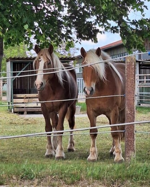 For sale is a harmonious Noriker pair consisting of two 6-year-old geldings, each approximately 16.1 hands high. Both horses impress with their balanced temperaments and exceptional reliability. They are talented, cooperative, and always eager to work – both in daily handling and as a team, they are straightforward and pleasant to manage. In traffic, the geldings are completely dependable and calm. They also behave quietly and socially on the pasture. Their friendly nature and nerves of steel make them ideal partners for recreational riders, agricultural work, or formal occasions. A well-coordinated team that convinces through its reliability and pleasant temperament.