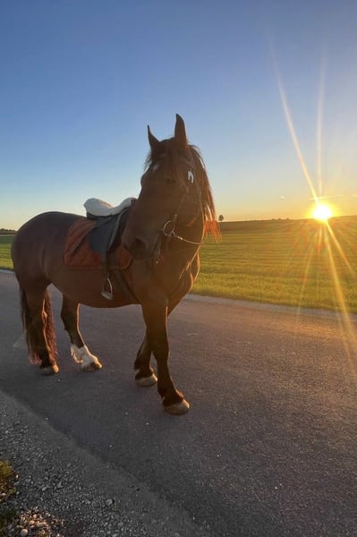 📍 Standort: Neukirchen (OÖ) 🐴 Name: Herkules „Hoomer Schaunitz“ 📌 Rasse: Noriker 🧬 Geschlecht: Wallach (kastriert) 🎂 Alter: 8 Jahre 🎨 Farbe: Kastanienbraun 💉 Impfung & Entwurmung: aktuell (Pferdegrippe, Tetanus) 🪪 Pferdepass: vorhanden ⸻ ✅ • Bei letzter tierärztlicher Kontrolle: lahmfrei auf hartem & weichem Boden • Keine bekannten Vorerkrankungen im Besitzzeitraum ⸻ 🎓 Ausbildungsstand • 3-monatige Western-Grundausbildung • Longe, Bodenarbeit, angeritten • Wird aktuell als Freizeitpferd genutzt • Solide Basis – ideal für weitere Förderung ⸻ 🧰 Zubehör inklusive ✓ Abschwitzdecke ✓ Westernpad ✓ Lederhalfter ✓ Pferdepass