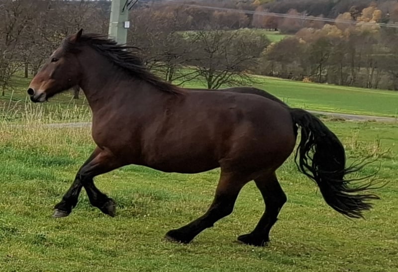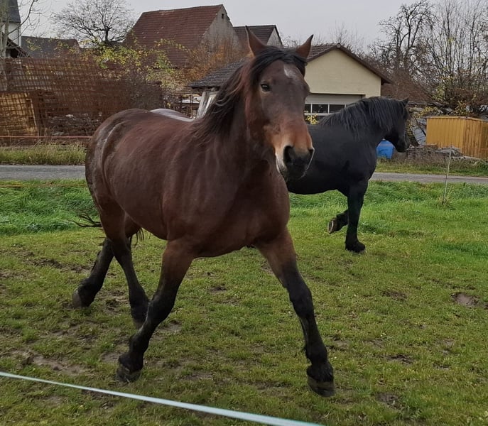 spirited Noriker mare for sale Registered 7.64 / 2a in the main studbook. She has already produced beautiful foals. Due to personal circumstances, we are offering her for sale as we unfortunately cannot establish a connection.