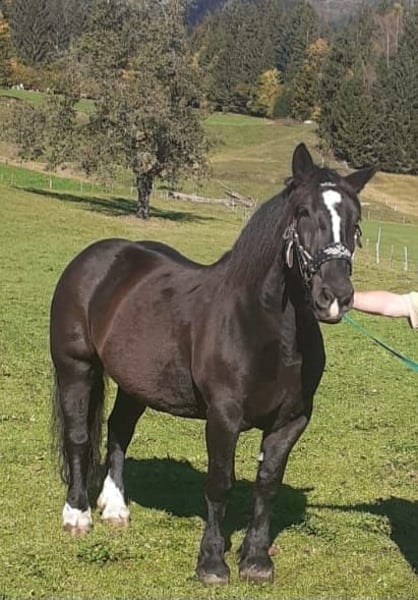 Larissa ist 159cm groß und liebt Geländeritte. Auch Kinder oder Anfänger können sie problemlos führen oder auf ihr reiten. Sie ist stets zuverlässig. Bei der Bodenarbeit macht sie gut mit. Das gutmütige Kaltblut ist 1- und 2-Spännig gefahren und war einige Male als Rückepferd im Einsatz. Auch im Schnee fühlt sie sich wohl und liebt es, Schlitten zu ziehen. Sie war auch schon bei Umzügen dabei und ist früher regelmässig für Touristen gefahren. Dabei zeigt sie sich engagiert, nervenstark und 100% Verkehrssicher. Hufschmied und Verlad macht sie routiniert und brav. Sie läuft seit 2 Jahren barhuf mit Hufschuhen vorne. AKU ohne Befunde ist vorhanden. Sie ist mit 7,59 Punkten im Stutbuch aufgenommen, sie hatte aber noch nie ein Fohlen. Ihre Mutter ist mit 7,91 Punkten im Stutbuch aufgenommen. V: Sternfürst Vulkan MV: Eigen Nero Geschirr und Kutsche kann dazu erworben werden.