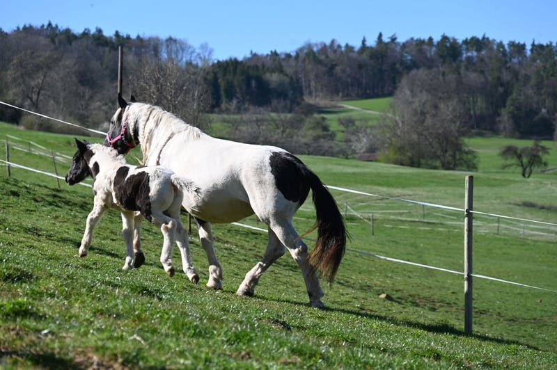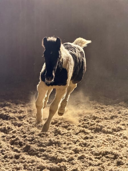 Jade Kubny was born on February 27, 2025. She is a black-spotted Noriker filly. She will be available for adoption starting in early September and can be reserved now. I have had a DNA test done, and she will pass on her color 75% of the time. Jade will be sold with a well-handled foal ABC and will be dewormed multiple times over the next 6 months. Jade is PSSM1 free. Her mother, Jasmina, has been entered into the studbook as a breeding mare with a score of 7.50. Her father, Hennessy Schaunitz, is licensed with a score of 7.73 and is a beautiful Noriker stallion. Jade is expected to grow between 160-164 cm. We have alpacas, dogs, children, cattle, chickens, cats, and farm machinery in our stable, which she will become familiar with. Jade is very curious, playful, and friendly. Sire: Hennessy Schaunitz Dam's Sire: Firon Elmar via Lotto Vulkan