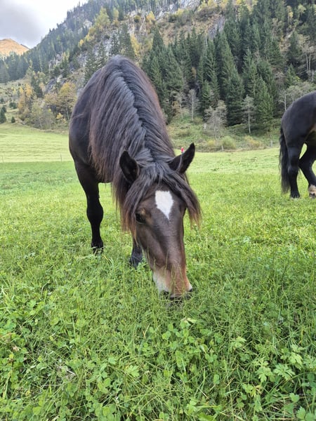 Wir verkaufen eine charmante, braune Norikerstute die mit ihrer rassetypische und typvoller Art überzeugt. Mit einen gut schreitenden Schritt und einer soliden Trabbewegung wurde sie mit 7,68 Punkten in das Stutbuch eingetragen. Flair wurde bereits zweispännig gefahren und kennt die ersten Übungen unter den Reiter. Sie ist verlade - und schmiedefromm.