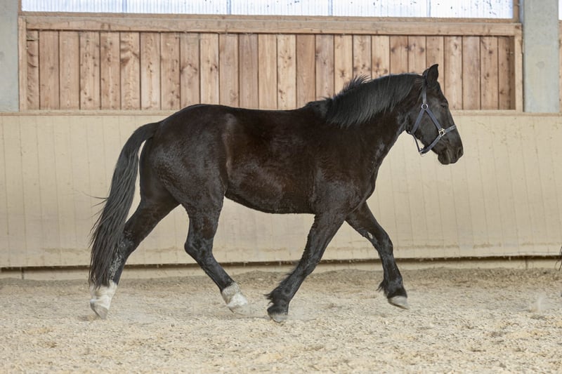 Baia di tre anni, puledra Norica con una presenza incantevole e un carattere eccezionale.