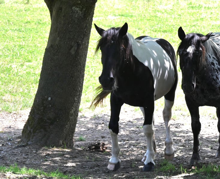 Melli è una cavalla Noriker di 2,5 anni, di colore pezzato nero. È molto affettuosa e coccolona. Melli vive con me da quando era un puledro. La sua proprietaria deve separarsi da lei e dalla sua mamma Miriam, quindi mi ha chiesto di occuparmi di questo. Melli crescerà fino a circa 160-163 cm. È completamente vaccinata, regolarmente sverminata, negativa al PSSM1 e ha già visto il maniscalco. Il padre di Melli è il campione Tiamo Z Vulkan, che è stato approvato con un punteggio di 7,91. Inoltre, ha superato il test di performance per stalloni come vice-riserva con un indice totale di 118,32. La sua mamma è Miriam, che è stata registrata nel libro delle fattrici con un punteggio di 7,64. Melli sale molto bene nel trailer per cavalli ed è educata dal maniscalco. Conosce perfettamente le basi per i giovani cavalli ed è impavida, amichevole e con la testa sulle spalle. Padre: Tiamo Z Vulkan, Madre: Schneider Vulkan.
