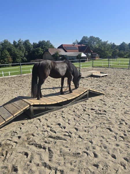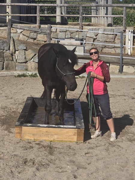 Whoopy is a 3.5-year-old Noriker mare, turning four in April. She is already backed but still requires support in further training, with the finer details being developed patiently and with sensitivity. In daily handling, she is absolutely well-behaved and shows no undesirable traits. Whoopy learns quickly, is motivated, and consistently attentive and confident. She is already familiar with the trail park and handles all obstacles there with ease and finesse. We are looking for an owner for Whoopy who has enough time to continue her education, grow together with her, and enjoys putting their personal touch into her training. If you are seeking a young, eager-to-learn, and gentle mare with great potential for the future, Whoopy will make a wonderful partner.