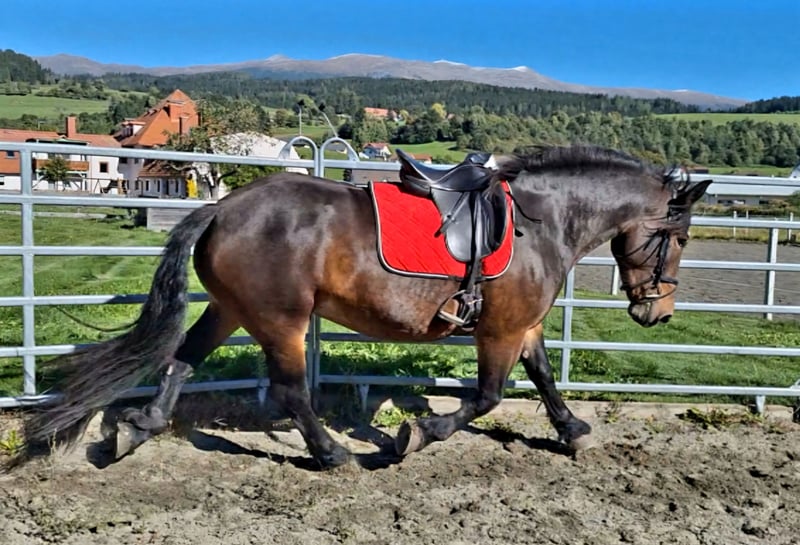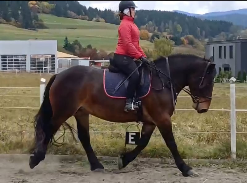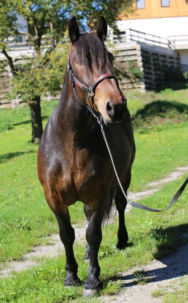 Sehr brave 3,5-jährige braune Norikerstute mit Stern nach Eisenhut Nero. Sie ist leicht angeritten, egal ob alleine oder in der Gruppe wobei sie sich sehr brav zeigt. Sie kennt Hufschmied, Hängerfahren und alles, was ein 3,5-jähriges Pferd kennen muss. Sie ist im Umgang sehr brav und hat einen tollen Charakter. Sie ist noch nicht im Stutbuch eingetragen