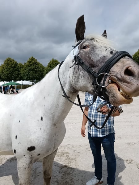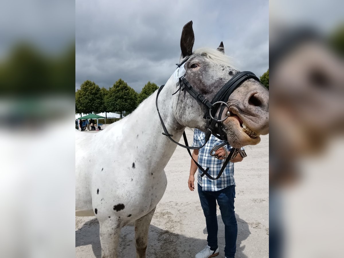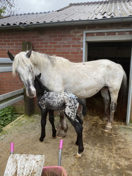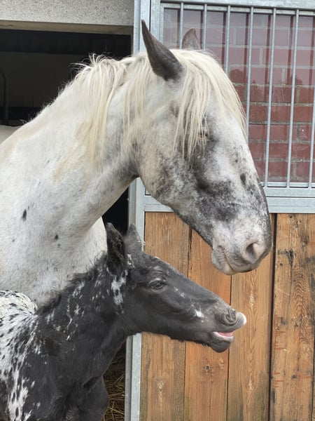 Unsere Norikerstute, geb. 04.2018, Elmar-Linie, 100% Leopardgen, PSSM n/n, sucht ein neues Zuhause. Sie ist geritten und gefahren, kennt Box und Offenstall, geht brav unterm Sattel und vor der Kutsche, ist brav im Umgang, hatte bisher 5 Fohlen, kann auf Wunsch noch gedeckt werden von Mirnock Diamant, Stutfohlen bei Fuß (hat leider 1 fehlentwickeltes Auge), Schmied, Verladen, Tierarzt völlig unkompliziert, war noch nie ernsthaft krank (1x Hufgeschwür). Transport kann gegen Kostenübernahme organisiert werden, oder auch Selbstabholer. Preis ohne Fohlen.