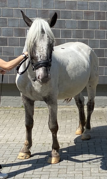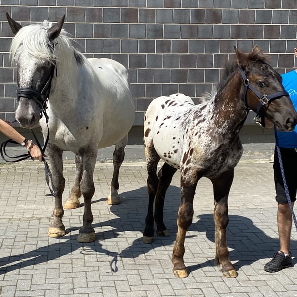 Onze Noriker-merrie, geboren in 04/2018, Elmar-lijn, 100% Leopardgen, PSSM n/n, zoekt een nieuw thuis. Ze is bereden en aangespannen, kent box en buitenstal, gaat braaf onder het zadel en voor de koets, is vriendelijk in de omgang, heeft tot nu toe 5 veulens gehad, kan op verzoek nog gedekt worden door Mirnock Diamant (merrieveulen aan de voet, helaas met één onderontwikkeld oog). Vertoont geen problemen met hoefsmid, laden, dierenarts; is nog nooit ernstig ziek geweest (één keer hoefzweer). Transport kan geregeld worden tegen vergoeding, of zelf ophalen. Prijs zonder veulen.