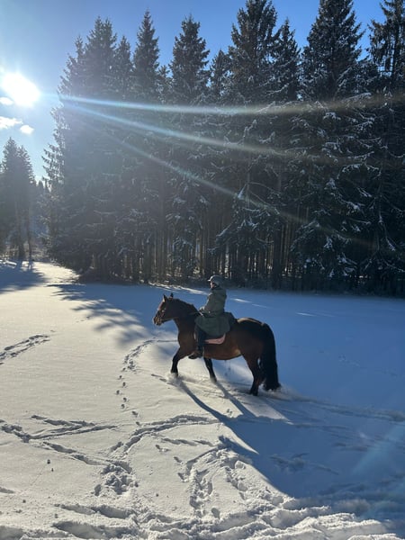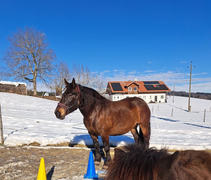 Zum Verkauf steht eine 9 jährige Noriker Stute Steckbrief: Rasse : Noriker Alter: 9 Jahre Geschlecht : Stute Stockmaß : ca 1,55 m Farbe : braun Ranghoch Derzeit vorne beschlagen Zähne , Impfung aktuell Bei den Vorbesitzer wurde sie ein-und zweispännig gefahren. Unter dem Sattel ist sie bereits geritten, und benötigt hier weitere Förderung. Bodenarbeit sowie klassische Platzarbeit liegen ihr weniger , dafür bringt sie Voraussetzungen für den Fahrsport mit . Sie ist kein Anfänger Pferd, sondern eher für jemanden geeignet, der sie entsprechend Ausbilden möchte oder ihren Schwerpunkt im fahren sieht. Sie ist eine verschmuste , freundliche aber Meinungsstabile Stute. Braucht deshalb einen konsequenten Menschen mit klarer Führung der Erfahrung mit Pferden hat . Kennt Offenstall, sowie Nachts Box. Steht in einer gemischten Herde. Bei Interesse , weiteren Kutsch - Videos, Bildern und Fragen gerne melden
