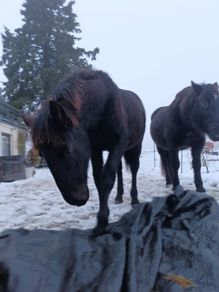 Rein schwarzer Noriker Hengst. Hat eine tolle Ausstrahlung, ist verschmust, lernt schnell und gerne. Kennt Hufe geben, Autos, Traktoren, Kinder, lässt sich problemlos führen und ein bisschen Bodenarbeit kennt er auch schon.