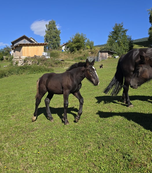 Noriker Fohlen – Taurus-G Vulkan XVI (geb. 15.05.2025) Vater: Taiga Vulkan XV PrH. Mutter: Lotti n. Gabor Diamant XIII PrH. Unser Noriker Hengstfohlen Taurus-G Vulkan XVI sucht ab Mitte Dezember 2025 ein liebevolles neues Zuhause. Er wächst bei uns im Herdenverband gemeinsam mit einem weiteren Norikerfohlen auf. Taurus ist ein besonders neugieriges, menschenbezogenes und lernfreudiges Fohlen. Schon seit seiner zweiten Lebenswoche begleitet er seine Mutter ins Gelände, auch als Handpferd am Strick. Beim Fohlen-ABC macht er fleißig mit – Halftern, Hufe geben, Putzen – alles klappt schon sehr gut. Sogar den Sattel seiner Mutter trägt er stolz selbst in den Stall. Er durfte bereits eine Messe besuchen und hat erfolgreich am Fohlenchampionat in Stadl Paura teilgenommen, wo er sich souverän gezeigt hat. WN 7,75 Seine Mutter Lotti WN 7,5 wird geritten, läuft fleißig vor der Kutsche und überzeugt durch ihren ruhigen, zuverlässigen Charakter. Sein Vater Taiga Vulkan XV PrH., war ein beeindruckender Hengst mit starkem Wesen – bekannt für seinen Einsatz im 10-Spänner sowie vor dem Römerwagen mit anderen Hengsten. Taurus wächst liebevoll, aber konsequent auf und darf sich weiterhin im Herdenverband mit viel Bewegung, Sozialkontakt und guter Betreuung entwickeln. Abgabe: Ab Mitte Dezember 2025 Natürlich entwurmt und mit Pass Hufschmied hat auch bereits darüber geschaut musste aber nichts machen Taurus wird auch nicht von heute auf morgen entwöhnt, wir beginnen immer mit einer eigenen Box über Nacht (Blickkontakt zur Mama vorhanden) und am Tag darf er wieder mit Mama auf die Weide. Das wird dann langsam gesteigert. Preis VHB Mehr Einblicke in Taurus Aufwachsen gibt es auf Instagram: _nadjagoetz_
