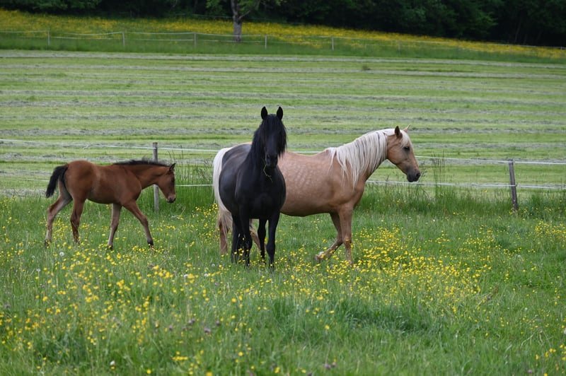 Dalla Spagna, barocchi cavalli di razza andalusa effettivamente chiamato Pura Raza Espanola, breve PRE, universalmente considerato come nobile, widerstandsfähgig, coraggioso e orientata alle persone. Il nome andaluso si applica ai cavalli con stranieri incroci di cavalli purosangue o Arabico. Cavall ...più