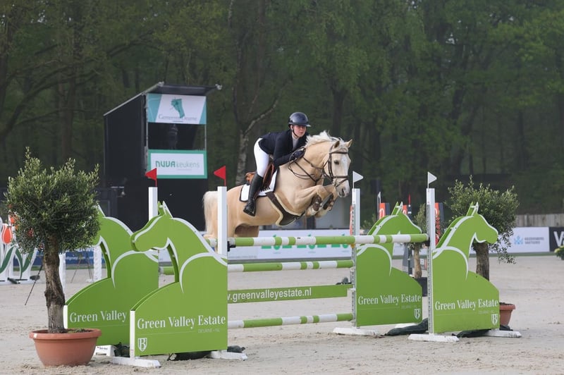 A causa dell'età di nostra figlia, stiamo cercando la miglior possibile corrispondenza per il nostro prezioso pony Keon van Orchid’s. Keon è con noi da quando aveva 5 anni e ormai possiamo definirlo quasi 7 anni nostro pony. È stato educato con calma fino al livello CSIO 130 cm. Keon ha una bella lista di risultati FEI senza eliminazioni e non ha mai subito infortuni. È facile da cavalcare, cambia i canini automaticamente ed è gestibile con un bit normale. Anche in scuderia e nel rapporto quotidiano, è un pony molto dolce e gentile. Per interessati seriamente; fateci sapere chi siete, cosa potete offrire e chissà…
