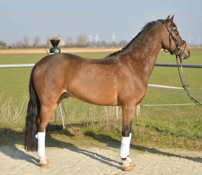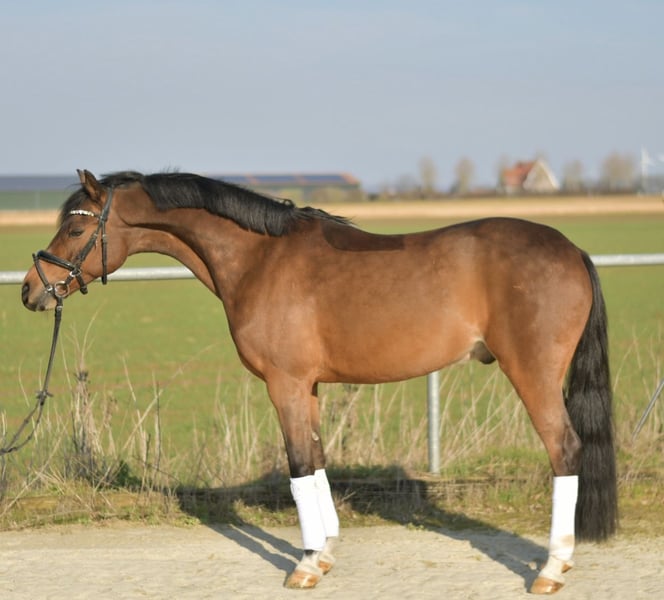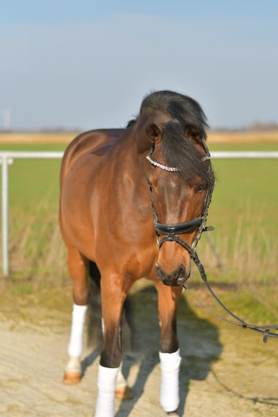 Beautiful Dutch Riding Pony: Milagro Milagro, our charming Dutch Riding Pony, was foaled in 2013 and is the perfect partner for riders of all ages. With a recent, positive X-ray examination, he offers not only peace of mind regarding his health but also the highest level of reliability. **Character and Training** His gentle nature makes Milagro an ideal pony for children. He is very sensitive and easy to ride, making learning and handling him a true pleasure. Trained up to L-level dressage, he confidently jumps over obstacles and easily navigates small courses. Milagro impresses with smooth gaits and provides excellent seat comfort, making riding a joy even for young or inexperienced riders. **Usage Options** Whether in the arena or on the trail, Milagro always behaves well and is cooperative. Standing at 1.44 meters, he impresses with his agility and pleasant gaits. **Special Offer:** Immediate purchase comes with a 5% discount on the asking price! **Test Ride:** We offer you the opportunity to test this pony for one week. This trial period can be accompanied by a talented trainer, and you have the option to combine lessons with testing. Please note that this is subject to a trial fee, which will not be deducted from the purchase price. **Viewing and Trial Riding:** Feel free to visit us to see him. The cost for a preliminary ride or test ride is €30 per person. Milagro is not only an excellent teacher but also a loyal companion who makes every ride a special experience. Let yourself be charmed by his charisma and rideability!