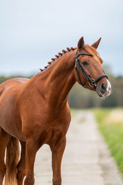 Sehr schickes 5-jähriges Dressurpony-Ruin. Le Vainqueur. Le Matsjo x Kasanova van Klaverborch. Ein äußerst liebenswertes und elegantes Pony, gemessen bei 1,43 m, aber wird noch etwas wachsen. Im letzten Jahr haben wir es ausgebildet, aktuell läuft es auf L2 mit Siegpunkt. Sehr angenehm zu reiten. Auch brav bei Ausritten im Gelände. Gute Bewegungen und läuft leicht nach Achten. Schnelles Pony, daher absolut nicht für Anfänger geeignet. Zudem besteht Potenzial als Springpony, es macht eine gute Sprungqualität. Sehr lieb im Umgang, leicht auf den Trailer zu verladen, beim Schmied und beim Scheren. Röntgenologisch untersucht und genehmigt. Videos auf Anfrage. Preis im normalen Rahmen.