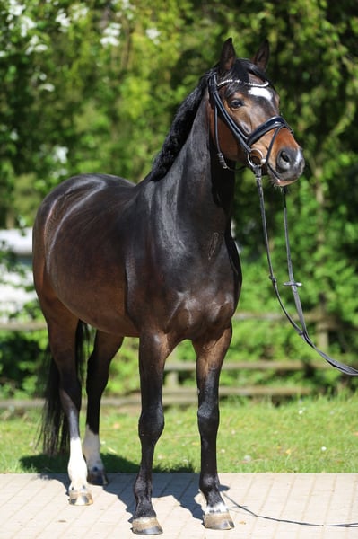 Zum Verkauf steht der braune Wallach Camaro, geboren 2020, mit einem geschätzten Stockmaß von ca. 1,50 m. Mit seinen 6 Jahren steht er noch am Anfang seiner Ausbildung und bringt viel Entwicklungspotenzial mit. Camaro ist aktuell in der Dressur auf E/A-Niveau ausgebildet. Gesprungen haben wir ihn seit wir ihn besitzen nicht. Er wurde bei uns im Schulbetrieb eingesetzt und wird aufgrund der Aufgabe des Schulbetriebs verkauft. Als junges Pferd ist er entsprechend verspielt und hat gelegentlich noch „Flausen im Kopf“. Daher wird er nicht als Anfängerpferd abgegeben, sondern eignet sich besonders für fortgeschrittene Reiter, die Freude daran haben, ein Pferd weiter auszubilden und zu fördern. Mit dem richtigen Reiter, der ihm Sicherheit gibt und konsequent, aber fair mit ihm arbeitet, entwickelt sich Camaro zu einem motivierten und leistungsbereiten Partner. Er bringt die nötige Einstellung und das Potenzial mit, um weiter gefördert zu werden und über sich hinauszuwachsen. Er hat aktuell keine gesundheitlichen Einschränkungen und war während unserer Besitzdauer auch nie lahm o.Ä. Wir haben ihn seitdem er bei uns ist nie verladen, daher können wir keine Angabe dazu machen, ob er verladefromm ist.