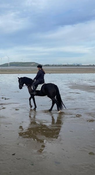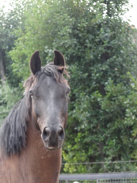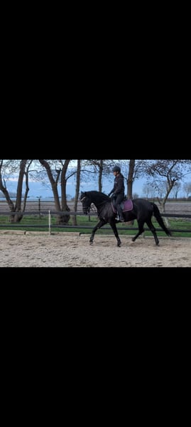 Nero is 7 years old. He has been with me since he was 1 year old. Unfortunately, I have to look for a new home due to lack of time. Nero is an all-round horse of about 1.60m (never officially measured). He enjoys dressage the most. Due to pregnancies, we have only competed in one competition, but he was very well-behaved and we achieved a win. He can also jump and is well-behaved on trail rides. He is also good when riding without a saddle, with a neck rope, and during in-hand dressage. He would also do great as a coaching horse. He does need a clear and confident rider. Sometimes he can be a bit of a toddler who enjoys playing around, but because of this, he needs clarity. He is always properly dewormed, vaccinated, and has seen the dentist, farrier, and osteopath. He finds the trailer a bit exciting, but with practice, he will be fine. He loads well. A vet check is possible at the buyer's expense. There are photos available of his back and part of his neck and legs. He is currently outside all day and in the stable at night. I would like him to go to a home where he can spend a lot of time outside during the day and with a rider who wants to work with him. A good home is more important than the price.