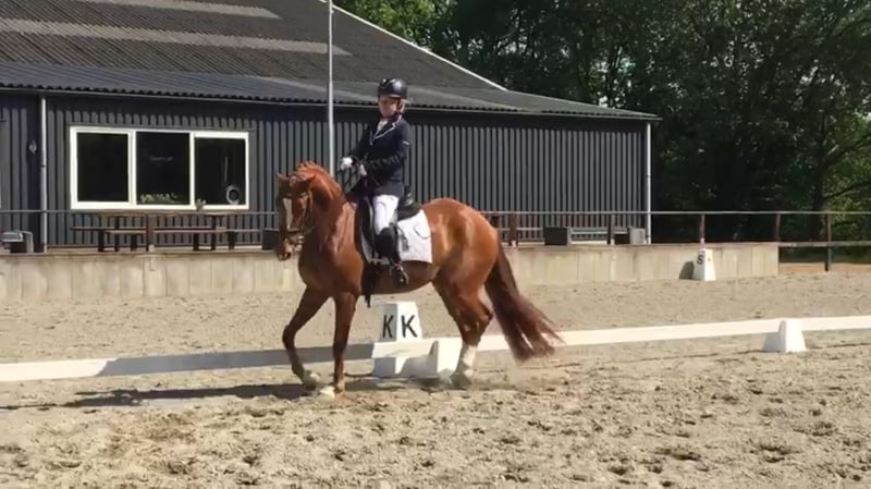 Goldstrike is een talentvolle ruin. Global express x Ultimo x Oriënt express Hij is werkwillig en leert super snel. We rijden op de wedstrijden Z1 dressuur en zijn nu bezig in de trainingen met de vliegende galop wissels en dit pakt hij echt super op. Afgelopen zomer met verenigingsteam kür op muziek voor meertallen gereden, hier loopt hij ook erg leuk tussen. Goldstrike is braaf onder het zadel, zou ook echt prima zijn voor overgang van pony naar paard. Ik heb hem 4 jaar geleden zelf zadelmak gemaakt en tussendoor zelf wat zwangerschappen gehad. Bij aankoop is hij klinisch en röntgenologisch goedgekeurd. Ivm tijdgebrek heb ik te weinig met hem gesprongen, hier is hij af en toe nog wat onzeker en groen in, maar ook dit pakt hij super goed op. Een leuk allround paard waar je zeker plezier mee zult hebben.