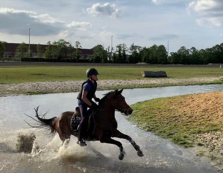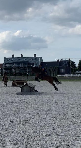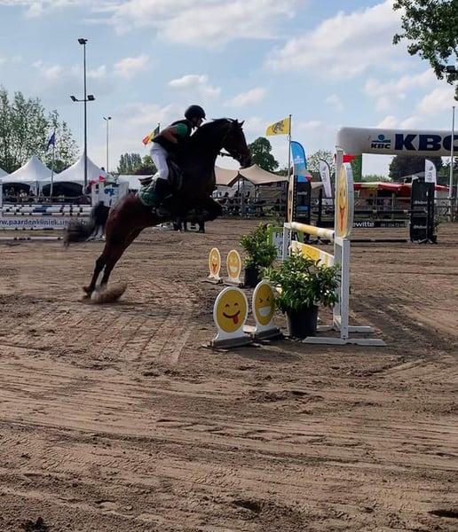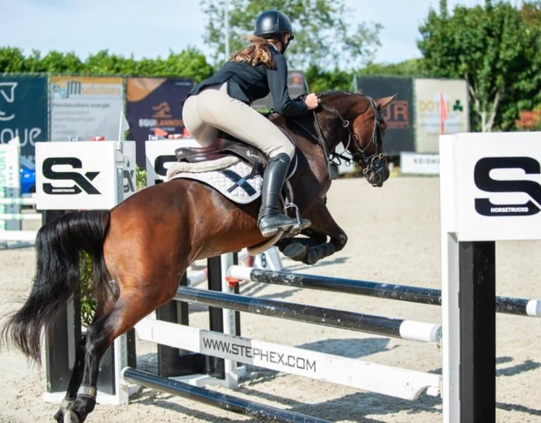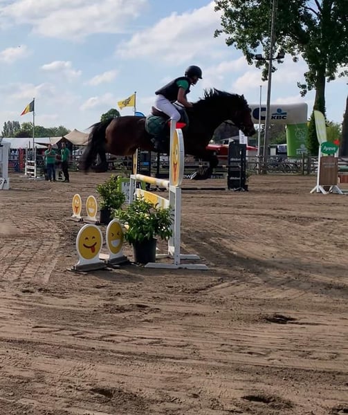 Quicky van de Claevervallei is een 9-jarige D-pony NRPS met een topafstamming rechtstreeks van de fokker. Vader = Lexus van de Claevervallei (BRP) die zelf INT gelopen heeft en zoon is van Vedet van de Vondelhoeve. Moeder = Sulaatik's Moment Supreme een zuivere New Forest die gelopen heeft tot 110 in NL en in België uitblonk in Dressuur. Quicky vdC heeft een schofthoogte van +/- 142 en is gezond en wel. Mag gekeurd worden. Trailermak. Quicky vdC is vooral een springpony maar kan even goed, gezien zij beschikt over heel veel bloed, ingezet worden voor Eventing alsook in dressuur kan ze haar mannetje staan. Ondanks Quicky vdC beschikt over een uitzonderlijk ongeëvenaard gouden karakter met een winnaarsmentaliteit is ze misschien niet direct geschikt voor een echt beginnende ruiter. Quicky vdC loopt op het moment zeer goed op het niveau van 90 tot 1 meter maar heeft zeer zeker de kwaliteit mits een goede ruiter en begeleiding om nog een stap hoger te gaan. Zoeken jullie een bloedmooie kinderpony met een subliem gouden karakter gekoppeld aan kwaliteit moet je niet verder zoeken. Meer video's (16 stuks) zijn te zien onder haar naam op Youtube. Verdere info enkel per telefoon 0032475705941 Berichten worden NIET beantwoord.