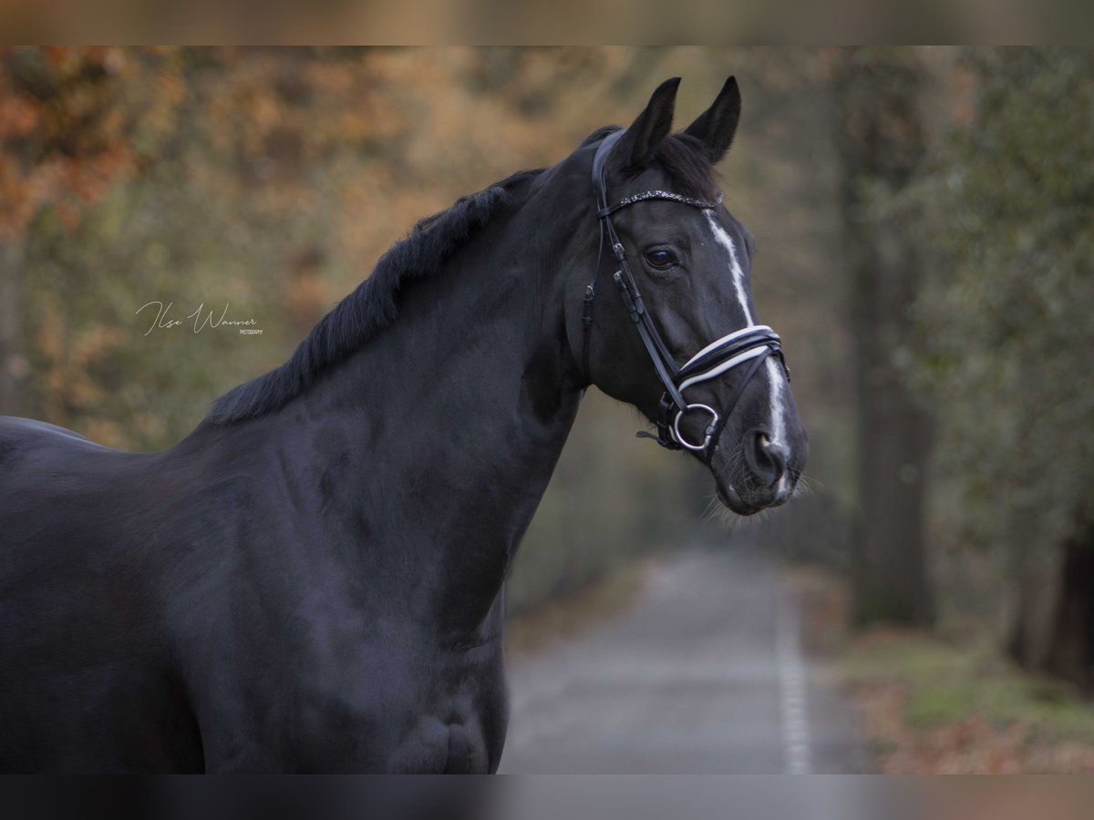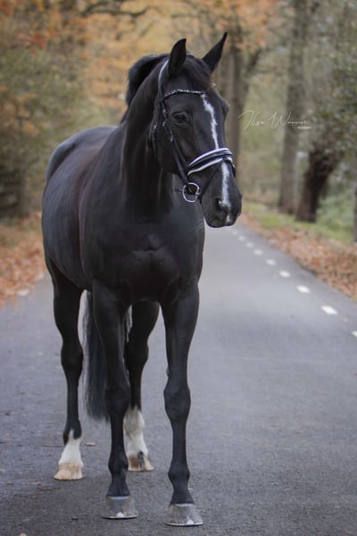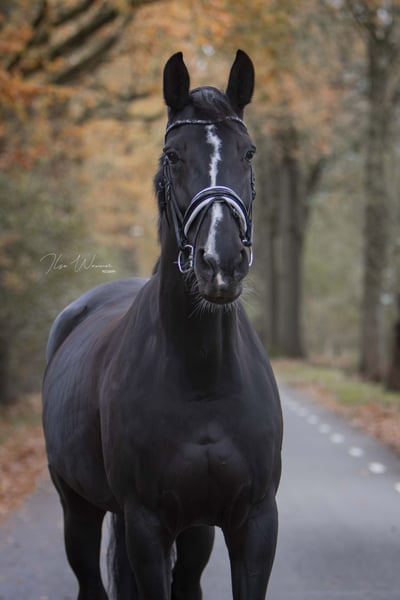 Helaas heb ik het besluit moeten nemen om mijn lieve, knappe, warmbloedige merrie te verkopen. Zij is 175 cm groot en zij heeft goede, ruime gangen. Zij heeft een vriendelijk, gevoelig karakter wat haar ongeschikt maakt voor de onzekere ruiter. Voor de ervaren als ook voor de wat onervaren ruiter biedt zij veel plezier en uitdaging. Bokken, steigeren of wegrennen doet ze niet. Onder het zadel is ze nuchter, ze schrikt niet snel en wil heel graag voor je werken (looplustig). Hoofdzakelijk is/wordt zij dressuurmatig gereden, een sprongetje vindt ze erg leuk en zij is braaf op buitenrit (verkeersmak). Zij zou een heel fijn familiepaard kunnen zijn. Recent is het rijden van (KNHS) wedstrijdrijden weer opgepakt. Zij is M2 geclassificeerd, maar omdat de laatste wedstrijdstart wat langer geleden is, zijn we nu bij het begin begonnen t.w. in de B (uit 4 wedstrijden 7 winstpunten) . Ze heeft geen stalgebreken, is braaf bij hoefsmid en dierenarts/tandarts en ook makkelijk te laden op de trailer. Zoals te zien is op de foto’s heeft ze een litteken op haar buik aan haar linker zijde. Hiervan ondervindt zij geen enkel hinder / dit doet niets af aan haar functioneren. Ook is dit geen probleem voor het fokken van een veulen. IN 2020 is ze röntgenologisch en klinisch goedgekeurd. Nogmaals keuren mag k.k. Naast registratie in het NRPS stamboek is zij ook geregistreerd bij de KWPN (STB-EXT PROX). Zij heeft uitstekende bloedlijnen. Geen handelaren of maneges, goed huis is belangrijk. Mijn vraagprijs is dan ook bespreekbaar.