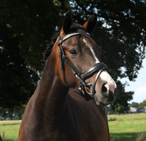 Queen Badu to bardzo łagodna 3-letnia klacz D-dressurowa. Jest osiodłana i obecnie jest doszkalana przez młodą dziewczynę. Jej ojcem jest Tackmann’s Candyman (zobacz zdjęcie 6), ogier, który przez lata startował na międzynarodowym poziomie w zawodach. Jego ojcem jest Champion de Luxe. Jej matką jest Chakira du Bois (zobacz zdjęcie 7), bardzo łagodna klacz od Don Cremello du Bois. Queen Badu jest przyjazna w obcowaniu. Prawdziwy przytulak! Nie ma problemów stajennych ani niepożądanego zachowania. Od źrebaka wychowywała się u nas i została osiodłana. Zawsze była szczepiona, odrobaczana i była u weterynarza stomatologa. Jej wzrost w kłębie to 1,39. Po więcej informacji prosimy o kontakt wyłącznie pod numerem 06-42652300.