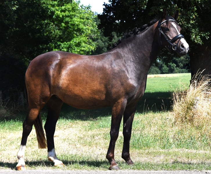 Queen Badu ist eine sehr liebe 3-jährige D-Dressurpony. Sie ist sattelfest und wird derzeit von einem jungen Mädchen eingeritten. Ihr Vater ist Tackmann’s Candyman (siehe Foto 6), ein Hengst, der jahrelang auf internationalem Niveau im Wettkampfsport erfolgreich war. Sein Vater ist Champion de Luxe. Ihre Mutter ist Chakira du Bois (siehe Foto 7), eine sehr liebe Stute von Don Cremello du Bois. Queen Badu ist im Umgang freundlich. Ein echtes Kuscheltier! Sie hat keine Stallgebrechen oder unerwünschtes Verhalten. Sie ist seit Fohlenalter bei uns aufgewachsen und wurde von uns sattelfest gemacht. Sie ist immer geimpft, entwurmt und beim Tierarzt gewesen. Ihre Schulterhöhe beträgt 1,39 m. Für weitere Informationen bitte nur Kontakt über 06-42652300.