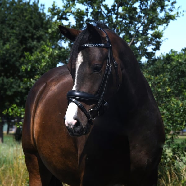 Queen Badu is een zeer lieve 3-jarige D-dressuurpony. Haar vader is Tackmann’s Candyman (zie foto 6), een hengst die jaren op internationaal niveau in de wedstrijdsport heeft gelopen. Zijn vader is Champion de Luxe. Haar moeder is Chakira du Bois (zie foto 7), een hele lieve merrie van Don Cremello du Bois. Queen Badu is lief in de omgang en braaf tijdens het rijden. Ze is een echte knuffel! Ze heeft geen stalgebreken of ongewenst gedrag. Ze is vanaf veulen bij ons opgegroeid en bij ons zadelmak gemaakt. Ze is altijd ingeënt, ontwormd en bij de tandarts geweest. Haar schofthoogte is 1.40. Voor meer informatie graag alleen contact via 06-42652300.