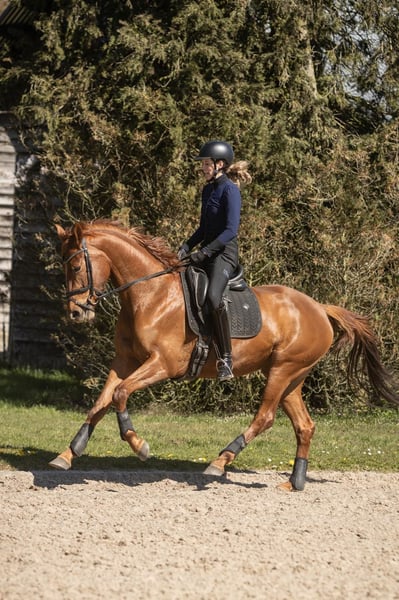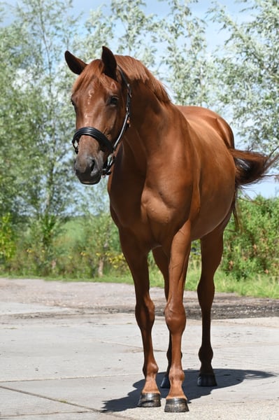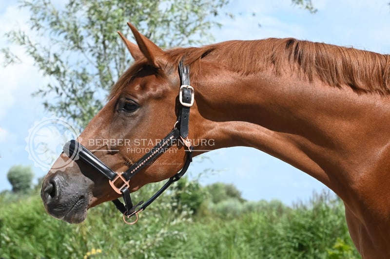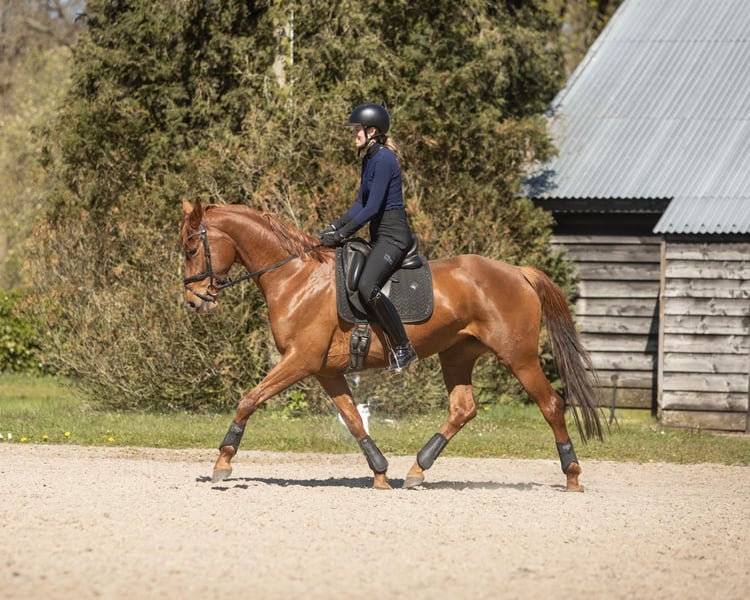 Isarah van Drakensteyn, auch bekannt als Saar, ist seit April 2022 bei uns und mittlerweile gut zadelbar. Sie ist ein äußerst liebenswürdiges, menschenbezogenes Pferd, das auch sehr sozial im Umgang mit anderen Pferden ist und problemlos in einer (gemischten) Herde läuft. Ihr Charakter ist äußerst angenehm. Sie hat eine schlanke Konstitution und misst etwa 1,65/1,66 m, ist jedoch noch sehr jung und wird sicherlich noch etwas wachsen… Die Amazone auf dem Foto ist 1,78 m groß. Saar ist sehr korrekt gebaut, mit geraden Beinen und guten Hufen. Sie wurde im Juli 2025 röntgenologisch ohne Befunde, inklusive Hals und Rücken, freigegeben. Die Röntgenbilder sind sehr gut! Vor der Ausbildung wurde sie außerdem tierärztlich beim Zahnarzt behandelt. Ihr Vater ist der prächtige Hengst Vainqueur (Vivaldi x Rubioso), der in Deutschland unter Dorothee Schneider erfolgreich in der Grand Prix-Dressur läuft. Ihre Mutter ist eine erfolgreiche GP-Stute des Hengstes Sorento (Sandro Hit x Donnerhall), die jetzt 19 Jahre alt ist. Saar war ihr erstes Fohlen (vierte Generation eigener Zucht) und im letzten Jahr wurde sie von dem Hengst Red Viper gedeckt. Diese Stute hat nach wie vor wunderschöne, trockene Beine und ist äußerst gesund. Hinter ihr steht der GP-Hengst Rubiquil (Rubinstein x Roemer), mit dem Laurens van Lieren seine Karriere begonnen hat. Saar wäre besonders geeignet für eine Reiterin, die den Übergang von Ponys zu Pferden machen möchte, allerdings ist sie nicht für unerfahrene oder unsichere Reiter geeignet. Sie ist schnell, sensibel – aber auf eine gute Weise –, zeigt niemals Buckeln oder Steigen und bleibt beim Aufsteigen stets ruhig stehen. Sie ist auch für die Zucht sehr interessant. Der Verkauf erfolgt vorbehaltlich der Genehmigung und liegt im oberen Preissegment. Möchtest du diese schöne orangefarbene Dame kennenlernen? Das ist möglich, sende mir eine WhatsApp-Nachricht (aufgrund der Arbeit kein Anruf). Saar steht momentan in der Mitte des Landes und kommt Anfang Mai wieder nach Hause (bei Amsterdam). Bitte nur per WhatsApp melden: 06-11343740