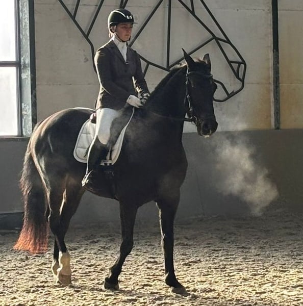 ✨ Mooie 4‑jarige merrie — ideaal voor wie houdt van een uitdaging/project ✨ Brave 4‑jarige merrie, zadelmak en heeft reeds enkele wedstrijden gelopen. Op verplaatsing is ze bomproof en kijkt werkelijk naar niets om, waardoor ze naast de sport ook heel geschikt is als betrouwbaar wandelpaard. Afstamming Apache v/h Trichelhof (Negro × Ferro) × Yana v/h Trichelhof (Rubels / Rubenstein I × Ragazzo). Dankzij deze sterke bloedlijnen is ze eveneens geschikt als toekomstige fokmerrie. Voor het rijden vraagt ze een zelfzekere, ervaren ruiter die graag met jonge paarden werkt en houdt van een uitdaging of project. Ze heeft een eerlijk karakter, maar heeft iemand nodig die haar op een rustige, consequente manier verder wil opleiden. Momenteel wordt ze niet bereden en loopt ze op de weide om verder uit te groeien. Het rijden zal dus opnieuw rustig opgebouwd moeten worden. In de omgang is het een superlieve merrie. Kent het laden op een camion en van. Veel grondwerk en schriktraining gedaan Ze is volledig gezond - osteopaat, tanden en vaccinaties in orde. Volledig RX‑goedgekeurd zonder bemerkingen, inclusief hals en rug Heeft lichte zomereczeem en draagt hiervoor een halsstuk, wat goed helpt Goede thuis is heel belangrijk Vorige eigenaar wil graag nog contact houden Valt onder de normale prijsklasse Veel filmpjes beschikbaar :-) Bij interesse of verdere info mag je gerust een bericht sturen