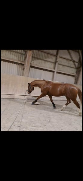 Divo ist ein 10 jähriger Oldenburger Wallach von Dimaggio x Santander . Er hat einen Stockmaß von ca 166cm. Er hat 3 schöne Gänge und einen Unkomplizierten Charakter. In der Dressur befindet er sich auf solidem A Niveau und beherrscht die Lektionen der Klasse L, allerdings nicht Tunierreif. Im Springen befindet er sich auf A* / A** Niveau. Im springen wurde er allerdings nicht regelmäßig gefördert, hin und wieder gelegentliche Lehrgänge und Springstunden. Erste Erfahrungen konnte er auch mit Geländehindernissen machen. Dort zeigt er sich sehr motiviert und lernwillig. Er benötigt einen ruhigen und sicheren Reiter, da er sich gerne aufheizt oder mal glotzig ist, daher nicht für Anfänger geeignet. Keine unarten wie bocken, durchgehen, steigen etc. Ich wünsche mir für ihn jemand mit Idealhaltung ( Paddockbox und o. mit täglichen Koppelgang) da er dazu neigt in Stresssituationen zu weben. Genaueres gerne Privat. 2024 hatte er eine Verletzung, welche vollständig ausgeheilt ist und ihn in keiner weise beeinträchtigt (klinikbericht vorhanden). Kleine AKU von 2020 und Rögtenbilder von allen 4 Beinen liegen vor. Auf Wunsch kann eine erneute AKU gemacht werden. Wurde regelmäßig geimpft, entwurmt, sowie jährliche Physiotherapie. Er wird unter Wert verkauft, da er seit mehreren Monaten Schwangerschaftsbedingt meinerseits nur sporadisch geritten wurde und sich aktuell nicht in Bestform (reiterlich) befindet. Platz vor Preis Passender Dressursattel von Kiefer (2023 gekauft) kann auf Wunsch mit Erworben werden. Bei Fragen oder Interesse gerne melden Videos können bei Interesse gerne geschickt werden +491604917189