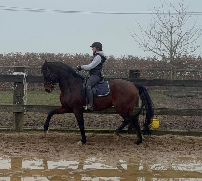 For sale is an absolutely wonderful Oldenburg gelding born in 2014, approximately 17.5 hands (Franziskus x Samarant). He is highly trained and has competed successfully in dressage up to S*** level, winning competitions up to class S*. He previously suffered a tendon injury, which has fully healed, and he is currently being gradually re-trained. This is reflected in his asking price. He is very well-behaved both on the ground and under saddle, making him an excellent school horse, especially suitable for young riders. We envision him primarily as a leisure and training horse. Currently, he lives in a mixed herd in an open stable and gets along perfectly well with others. A recent video is available. The price will increase with further training and once a new veterinary exam (TÜV) has been completed! Price range: €20,000 – €30,000 No known illnesses or allergies. For trial riding, pre-riding, or other tests, we charge €35, which will be credited upon purchase. Please feel free to call or send a message: 0157 36803742. All information is provided without guarantee. Price is subject to change. Transport possible. Online purchase available.