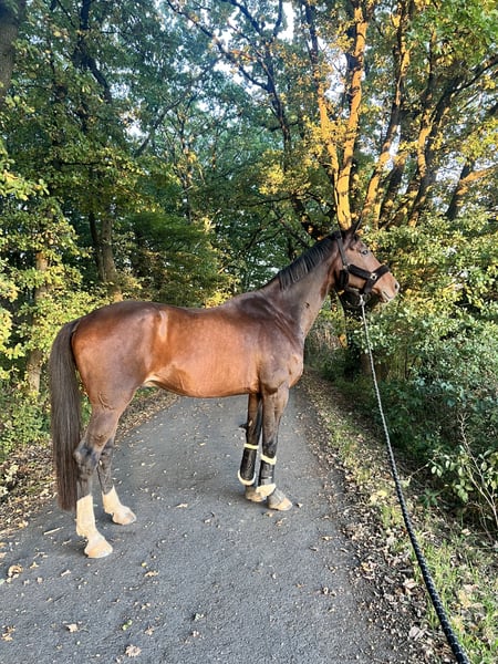 For sale is my impressive Oldenburg gelding, First Nacho. The dark bay gelding impresses with his generous height of 1.83 meters and his elegant appearance. He is ideally suited for leisure riding and convinces with his friendly nature as well as his versatile capabilities. The horse is healthy aside from his equine asthma, well-built, and reliable – perfect for riders who value quality and character. I purchased Nacho at the age of five, and he has become very dear to the whole family. Therefore, a sale to a dealer is not an option. At that time, Nacho was trained in M-level dressage, but I have mostly ridden him for recreational purposes, and he has always enjoyed varied work. If interested, I look forward to hearing from you!