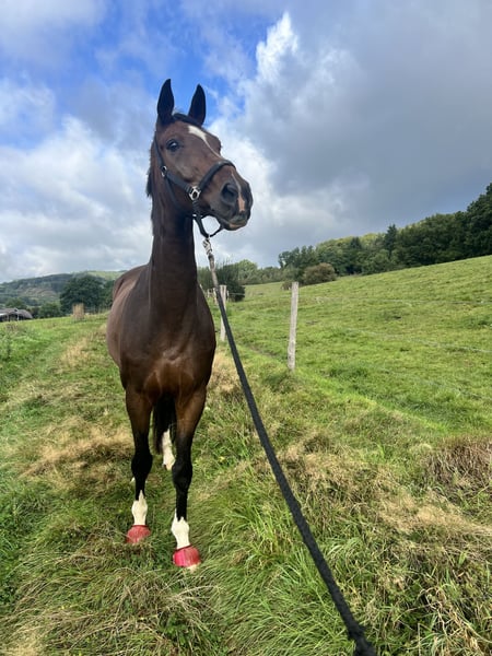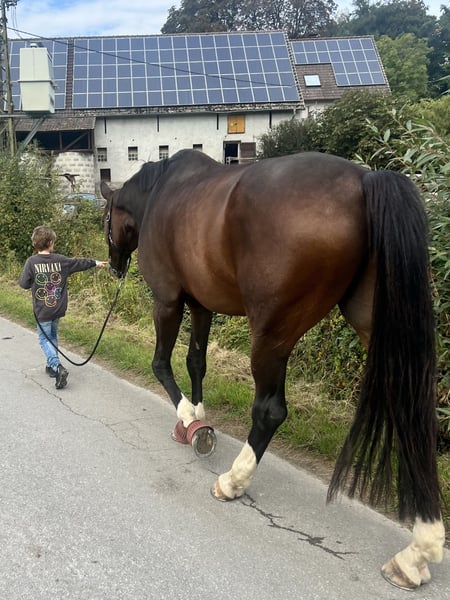 Je vends mon impressionnant hongre Oldenburger, First Nacho. Ce hongre, baie foncée, se distingue par sa taille généreuse de 1,83 m et son allure élégante. Il est parfaitement adapté pour la randonnée et convainc par son tempérament amical ainsi que par ses nombreuses possibilités d’utilisation. Le cheval est en bonne santé, à l’exception de son asthme équin, et reste élégant et fiable – idéal pour les cavaliers qui attachent de l’importance à la qualité et au caractère. J’ai acheté Nacho à l’âge de cinq ans, et il est devenu très cher à toute la famille. Par conséquent, une vente à un marchand n’est pas envisageable. À l’époque, Nacho était monté en dressage sur M, mais je l’ai principalement utilisé pour des activités de loisir, et il a toujours apprécié un travail varié. Si vous êtes intéressé, je me réjouis de votre contact !