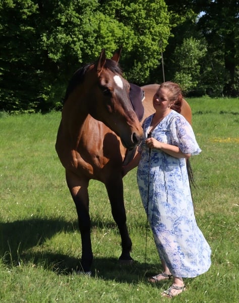 Wir suchen schweren Herzens für unseren Wallach Ampi ein schönes für immer Zuhause. Ampi ist 1,72m groß, 12 Jahre alt und ein absoluter Teddybär. Er ist total verschmust und Menschenbezogen, weshalb ich mir für ihn einen Menschen suche wo er die volle Aufmerksamkeit und Liebe bekommt. Er wird freizeitmäßig geritten, sowohl Dressur als auch Springen. Am liebsten ist er aber im Gelände unterwegs. Darum suchen wir für ihn auch ein Zuhause wo er einfach Freizeit Pferd sein kann. Ampi kann auch manchmal ziemlich stur sein, weshalb er auf jeden Fall kein Anfängerpferd ist. Wenn er seinem Menschen aber erstmal vertraut geht er mit ihm durch dick und dünn und macht für einen alles! Vor 2 Jahren wurde bei ihm Asthma festgestellt, weshalb er von Süddeutschland nach Norddeutschland gekommen ist. Hier ist er aber super zufrieden und zeigt keinerlei Symptome. Außerdem hatte er vor einem Jahr Entzündungen in mehreren Gelenken was laut Tierarzt auf den vorherigen Springsport zurück zu führen war. Seit der Behandlung ist er auch da vollkommen gesund und hat keinerlei Einschränkungen. Trotzdem möchten wir ihn nicht wieder in den Sport schicken. Kleine Sprünge macht er aber mit Freude mit. Haltungstechnisch wäre ein Offenstall wünschenswert und Heulage Fütterung da er damit sehr gut zufrieden ist und Gesundheitlich gut klar kommt. Er ist mittelrangig und bleibt steht's fair. Tritt und beißt nicht. Schmiede und Verladefrom ist er ebenso. Außerdem wird er mit einem neuen Sattel der vor einem Jahr vom Sattler für ihn ausgesucht wurde abgegeben. Bei Interesse melde dich gerne damit du ihn kennenlernen kannst.