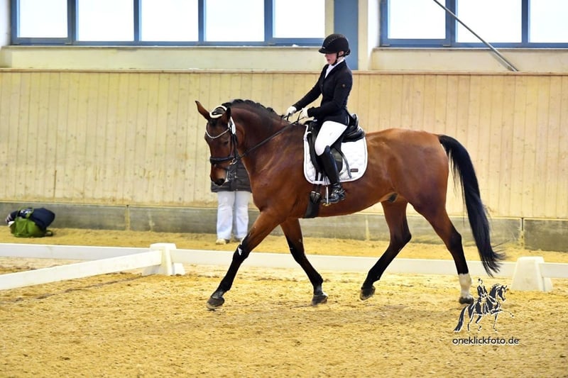 Noch vom Züchter, behütet aufgewachsen und sorgfältig ausgebildet ist „Dreamy“ stets anständig beim Reiten, geht zuverlässig alleine oder in der Gruppe ins Gelände und springt auch gerne einen kleinen Parcours. „Dreamy“ ist auch auf Turnier brav, lässt sich entspannt reiten und super händeln. Dressur Ausbildungsstand ist M im Training; ist M Dressur gegangen. Mit seinem eleganten Auftreten ist er der ideale Partner für jede/n ambitionierte/n Reiter/in, auch im gehobenen Freizeitbereich. Er ist brav im Handling, fleißig beim Reiten und kennt Führanlage, Paddock, Koppel. Zur Zeit wird er von einer 17 jährigen Reiterin in Kooperation mit ihrer S** erfolgreichen Tranerin weiter ausgebildet. Wenn Sie auf der Suche nach einem talentierten und erfahrenen Reitpferd sind, das sowohl im Viereck als auch im täglichen Umgang überzeugt und mit dem Sie viel Freude haben werden, dann könnte er genau der Richtige für Sie sein. Die OPKostenversicherung kann ohne Wartezeit übernommen werden. Darüberhinaus bieten wir als Züchter diesem volljährigen Pferd nach dem Ausscheiden aus den Sport einen Platz auf Lebenszeit. Die Inzahlungnahme einer Stute oder eines jungen auch schwierigen Pferdes mit interessanter Dressur- oder Springabstammung ist möglich. Für weitere Informationen und zur Vereinbarung eines Besichtigungstermins freuen wir uns auf Ihre Kontaktaufnahme; Text-/Sprachrichten bitte ausschließlich auf Tel.nr. 0171… Wir beraten und betreuen Sie umfassend und professionell beim Probereiten.