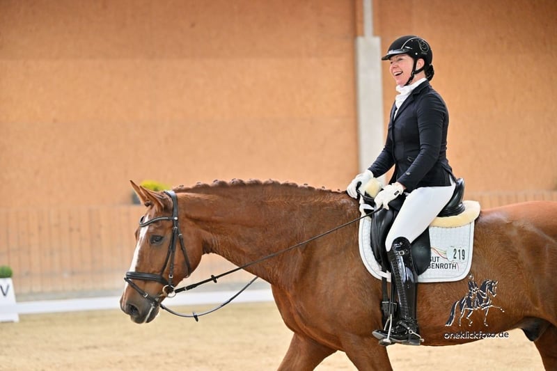 Ancora dal suo allevatore, questo stallone statuario e delicatamente addestrato cerca nuove sfide. Facile da gestire in tutte le faccende quotidiane, si lascia cavalcare con grande finezza. È obbediente e rilassato anche in gara. Si distingue per un passo molto buono, un trotto spettacolare e una forte propensione alla raccolta al galoppo. Attualmente in addestramento con una amazzone di livello Grand Prix. Per ulteriori domande, sono disponibili messaggi di testo o vocali, anche con ulteriori video, esclusivamente al numero di telefono 0171… Durante la prova, riceverete consulenza e assistenza complete e professionali.