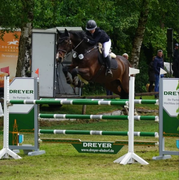 Cadoro 15-jähriger Wallach | ca. 175 cm Erfahrener Sportpartner mit überdurchschnittlichem Vermögen. National & international bis 1,50 m platziert. • rittig, mit genügend Blut im Parcours • leistungsbereit und motiviert • stets gesund, keine bekannten gesundheitlichen Probleme • aktuell mit TÜV Ein ideales Pferd für ambitionierte Reiter, die ein erfahrenes Parcourspferd suchen. 💰 Preis: 35.000 € VB 📍 27404 Heeslingen 📞 0171 / 2704358