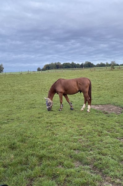 Nous recherchons une nouvelle famille pour notre hongre alezan Cortino. Il a 15 ans, mesure 1,70 m et fait partie de notre famille depuis 7 ans. Il est en excellente santé et parfaitement soigné. Il aime travailler en dressage et en cavaletti. De temps en temps, il effectue de petits sauts ou croix à la maison, qu’il réalise avec bravoure. C’est un cheval détendu, avec des allures très souples et agréable à monter. Il maîtrise des exercices de dressage tels que les changements de pied volants et le galop en extérieur. Cortino est calme et câlin, il adore être choyé. Très détendu, il ne se laisse pas perturber par quoi que ce soit et est un cheval sur lequel on peut toujours compter. Il se rend volontiers en extérieur, seul ou en groupe. Ces dernières années, Cortino a participé à des concours de saut en amateur (niveau A), il n’a aucun problème avec le camion, les sorties en extérieur ou les lieux inconnus. Il est un élève modèle chez le maréchal-ferrant. Il est régulièrement vacciné et vermifugé. Il est habitué à être en box avec un accès quotidien au paddock ou au pré (en solo ou avec 1-2 autres hongres) et travaille régulièrement en marcheur. Actuellement, il porte 4 fers. Malheureusement, il ne prend plus de plaisir à faire du saut d’obstacles sportif. C’est pourquoi nous cherchons pour lui une place où il pourra profiter de sa vie de loisir, sans devoir participer à des compétitions, en tant que compagnon de détente. Nous souhaitons trouver pour Cortino un foyer idéal, le prix n’étant pas notre priorité. Vente 7.000 € VHB