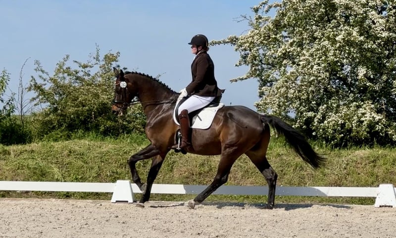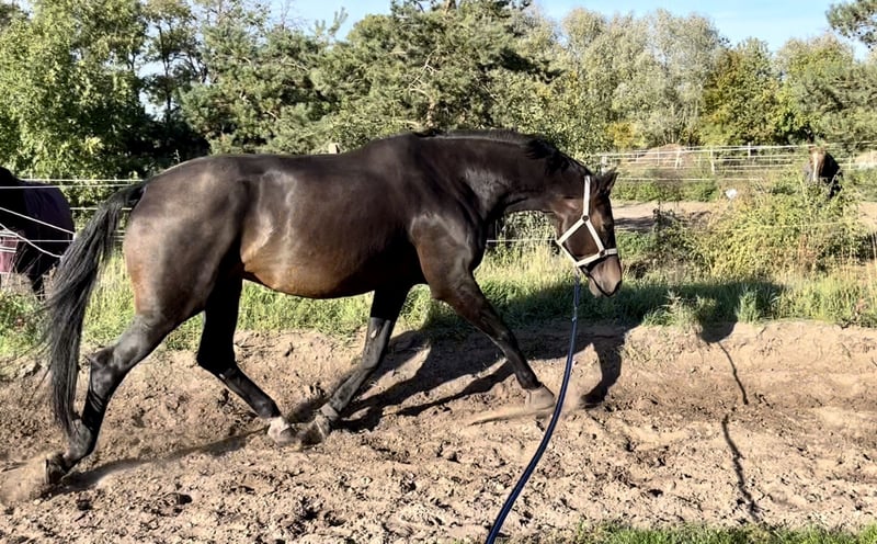 Schweren Herzens und rein aus privaten Gründen möchte ich für meinen Wallach ein neues zu Hause suchen. Gatsby ist 1,82 m groß und 2010 geboren. Abstammend von Stedinger aus einer Abke Mutter ist er doppelveranlagt, wobei er in den letzten Jahren ausschließlich in der Dressur gefördert wurde. Ich möchte ihn jedoch nicht als Sportpferd verkaufen. Gatsby ist ein zuverlässiger Partner, der, wenn das Vertrauen da ist, für seinen Reiter „durchs Feuer“ geht. Er geht zuverlässig ins Gelände, egal ob in der Gruppe oder alleine. Jedoch benötigt er vom Reiter Sicherheit, da er manchmal ein wenig aufgeregt ist, wobei er jedoch keine Unarten zeigt. Gatsby „leidet“ unter Shivering. Dies jedoch in einer schwachen Form. Bei richtiger Haltung (Offenstall), vernünftigen Futter und einer guten Muskulatur ist das Shivering kein Problem. Gatsby ist Schmiede- und verladefromm. Er lässt sich auch mit Ruhe und Geduld (was bedeutet, dass er manchmal etwas länger braucht um sich richtig auszubalancieren) auf allen vier Beinen beschlagen. Gatsby steht aktuell seit 1,5 Jahren 24/7 auf der Weide, da ich ein Baby bekommen habe und es zeitlich einfach nicht möglich war. Er ist jedoch kerngesund, regelmäßig geimpft und entwurmt. Diesen Herbst wurde er von der Weide geholt und ist mit einer Freundin an die Ostsee gefahren, hier wurde er einen Tag longiert und dann wurde er geritten, was alles kein Problem war. Mit etwas Überzeugung ist er sogar ins Meer gegangen. Ich möchte ihn nicht als Sportgerät verkaufen. Hier und da mal ein kleines Turnier zu starten, sehe ich jedoch als unproblematisch. Auch auf dem Turnier ist er stets artig. Er ist einfach ein toller Kumpel und benötigt seinen Herzensmenschen den er vertrauen kann. Platz vor Preis und auch kein Eilverkauf! Gegen Aufpreis gebe ich auch sehr gern seinen Maßsattel der Firma Hennig mit (kaum genutzt und quasi neu), sowie weiteres Zubehör. Weitere Fragen beantworte ich sehr gerne privat.